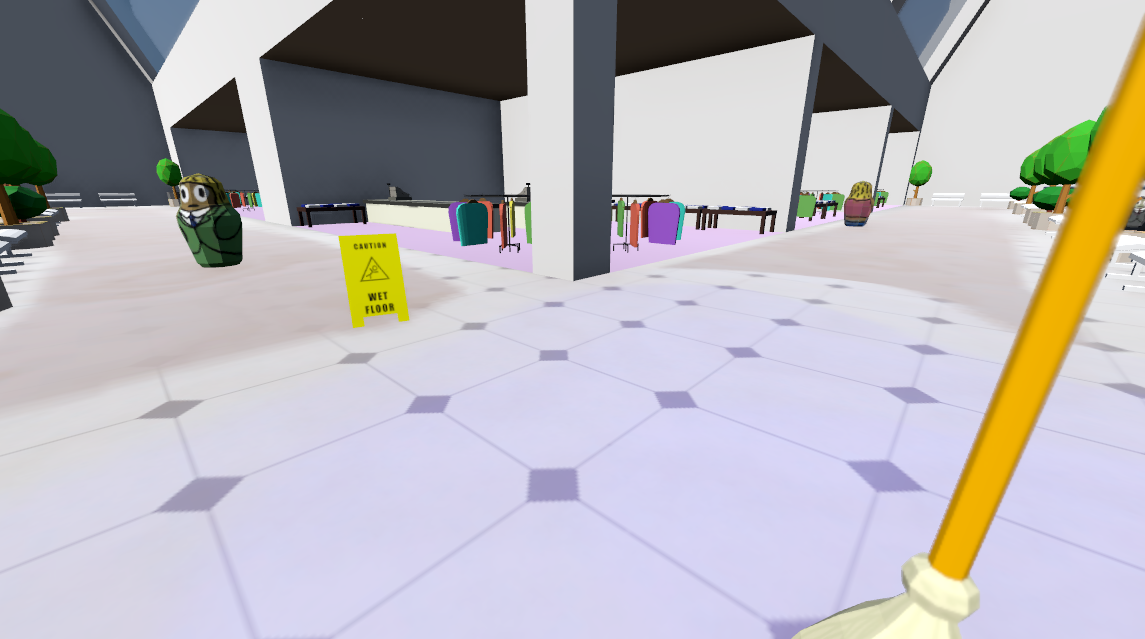 Customers will slip on slick floors, move the wet floor signs to keep areas safe... or not >:)